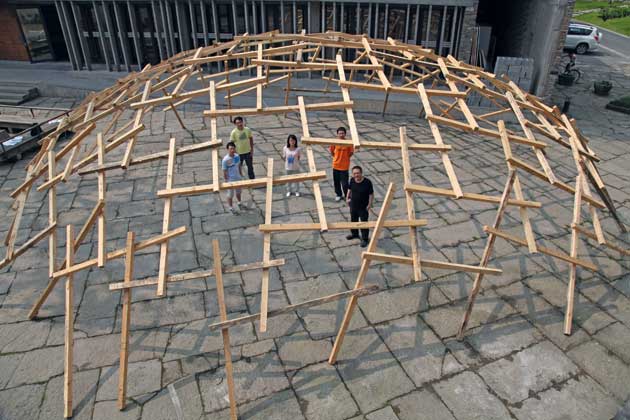 Amateur Architecture, uno dei 15 studi invitati da Pierluigi Nicolin all’Hangar Bicocca per Architecture as Art: Wang Shu, Decay of a Dome, esperimento costruttivo realizzato in scala 1:1 per la Biennale di Venezia del 2010 di fronte alla Scuola di Architettura del Campus di Xiangshan (Foto Lu Wenyu). |