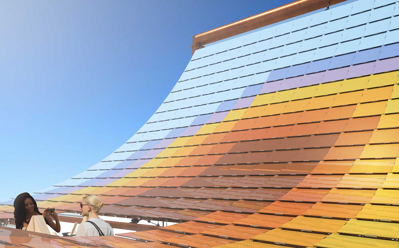 Quest’anno la principale installazione della Dutch Design Week di Eindhoven (dal 22 al 30 ottobre), progettata da V8 Architects e Marjan van Aubel Studio, è un padiglione che trasforma la raccolta dell’energia solare in uno spazio pubblico stimolante, con pannelli fotovoltaici colorati che diventano più di semplici elementi tecnici.