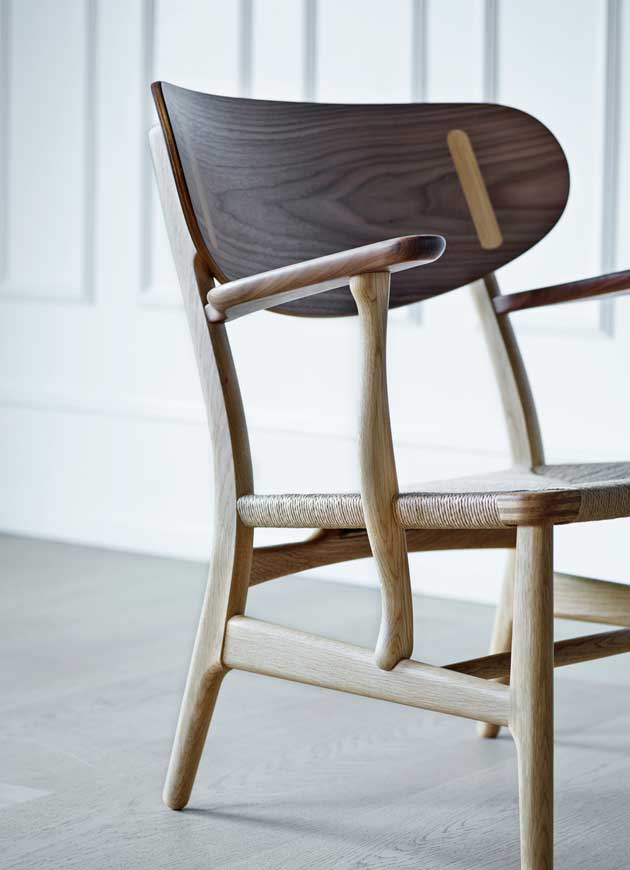 Carl Hansen & Søn, poltroncina CH22 di Hans J Wagner in rovere e noce, dettaglio |