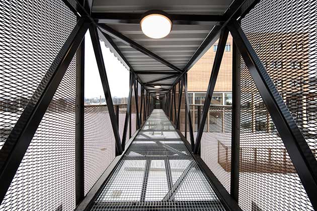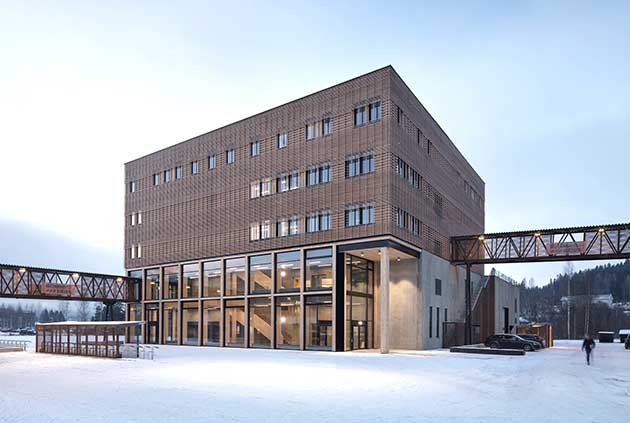 passaggi coperti collegano il nuovo volume agli altri edifici del piccolo campus (foto ©Statsbygg_Trond-Isaksen) |