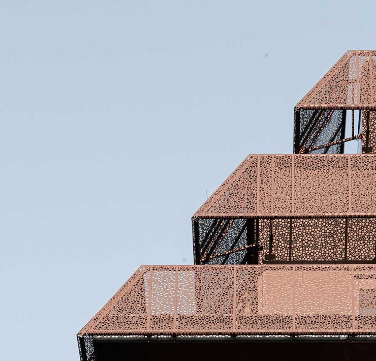 Questo processo conferisce al legno il suo aspetto caratteristico, che invecchierà con il paesaggio naturale che circonda il punto di vista di Domen acquisendo una patina grigio-argento.