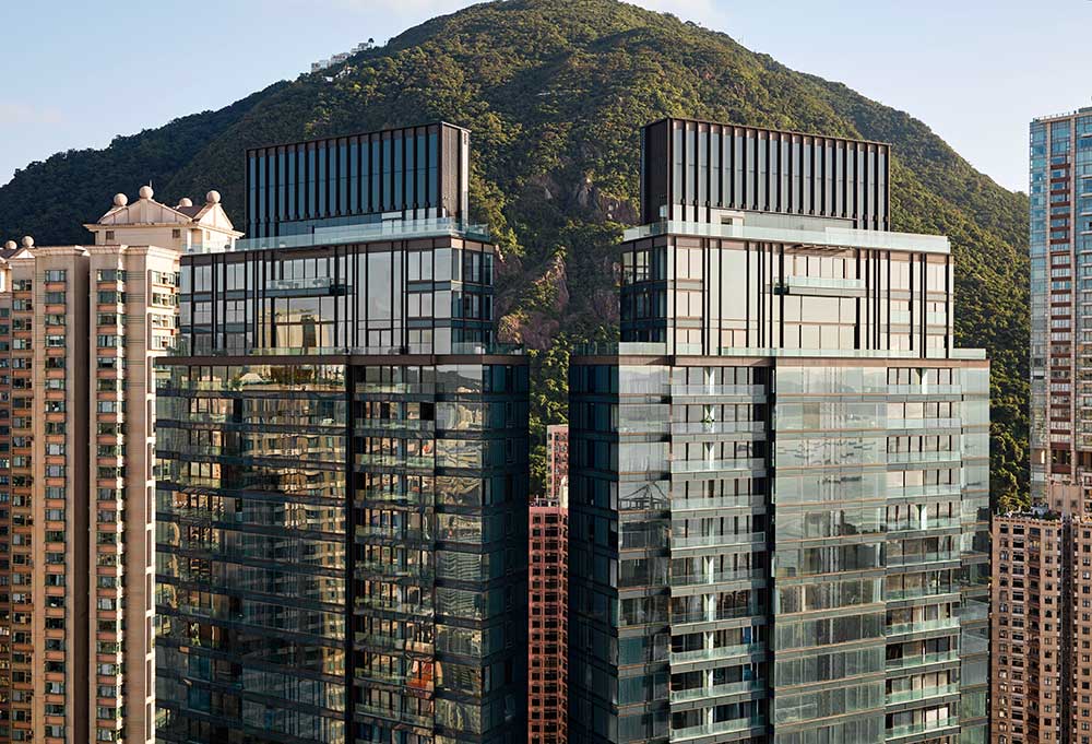 Il rivestimento di facciata, composto da una sofisticata griglia di linee orizzontali in vetro e bronzo, accoglie aperture scorrevoli, vetrate angolari, balconi e elementi tecnici seguendo un ritmo architettonico continuo. Il sistema stratificato della facciata integra componenti mobili progettati per rispondere alle condizioni climatiche di Hong Kong anche in presenza di tifoni tropicali.