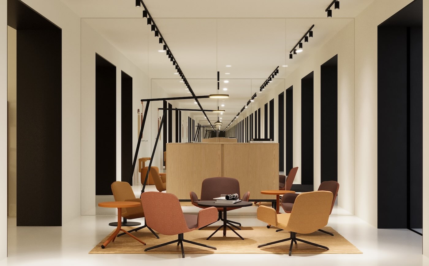 Il nuovo allestimento del flagship – completamente rinnovato per l’occasione – diventa un luogo di confronto sui cambiamenti in atto negli spazi ufficio e hospitality, dove arredi e sistemi si misurano con esigenze sempre più fluide. Il progetto si costruisce attorno a un’idea chiara: la forma come segno generativo. Un segno che attraversa lo spazio e guida il percorso, trasformandosi da elemento grafico a struttura tridimensionale. Ne deriva una sequenza di ambienti in continuità, ciascuno con un ruolo preciso ma aperto a interpretazioni diverse.