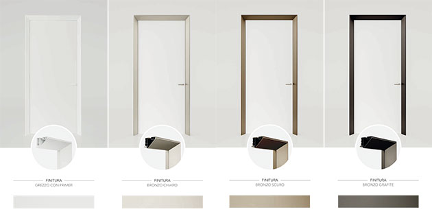 Il telaio è disponibile nei colori: bronzo chiaro, bronzo scuro, bronzo grafite e nella versione grezza con rivestimento in primer.
