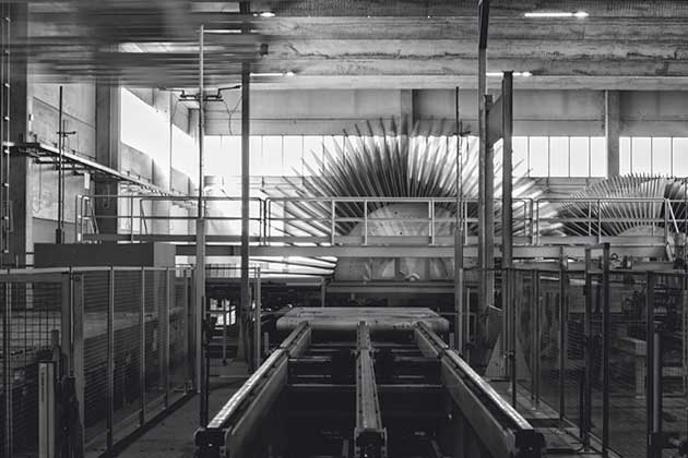 Lo stabilimento si sviluppa su una superficie di 600.000 metri quadrati con due linee continue di produzione, cui si aggiungono quattro linee di nobilitato di ultima generazione.