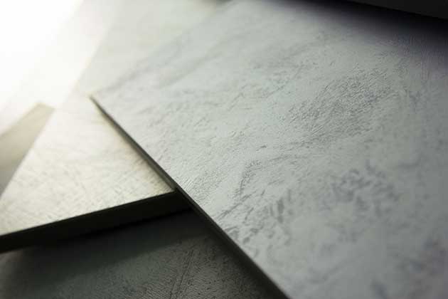 I pannelli nobilitati con decori e finiture di vario tipo, tra cui effetto legno, tessuto, pietra, pelle, evocano la materia e amplificano l’aspetto sensoriale della superficie.