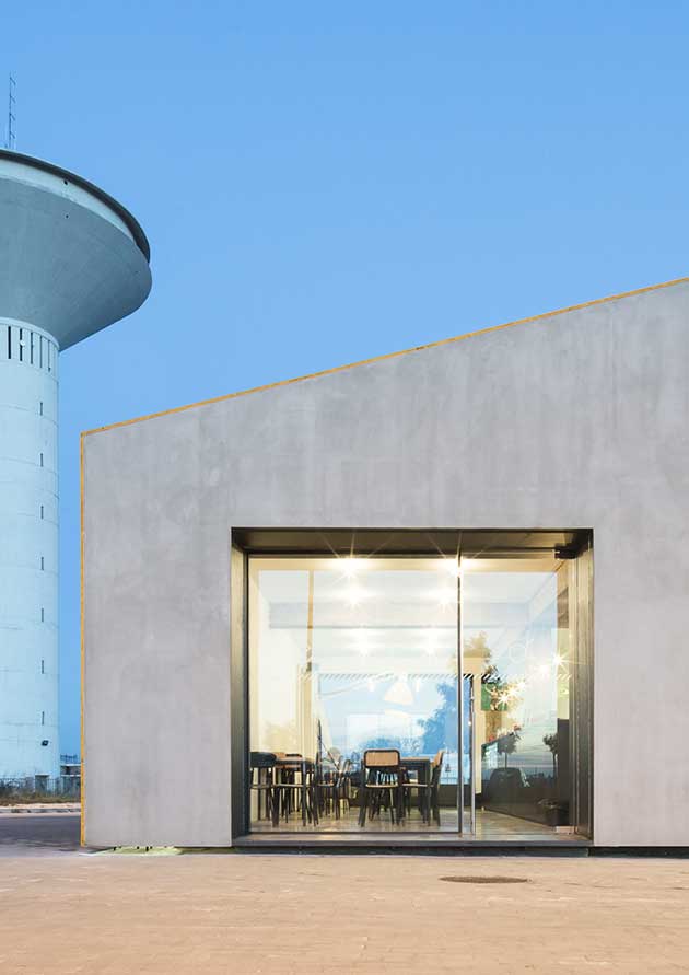 Eco Bar, Ragusa. Il nuovo spazio, destinato a bar, caffè e ristorante, è stato progettato da Giuseppe Gurrieri Architetto, ed è ottenuto dal riuso dell’ex biglietteria del palazzetto dello Sport (foto, ©Filippo Poli) |