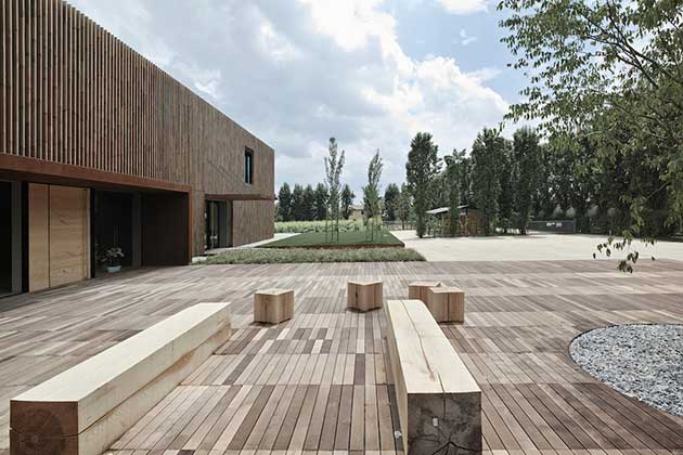 Cantine Pizzolato, Treviso. L’opera, progettata da Made Associati _ architettura e paesaggio, ha previsto la realizzazione di uno spazio commerciale, per uffici e di un centro visite con annessa enoteca (foto, ©Made Associati_Adriano Marangon) |