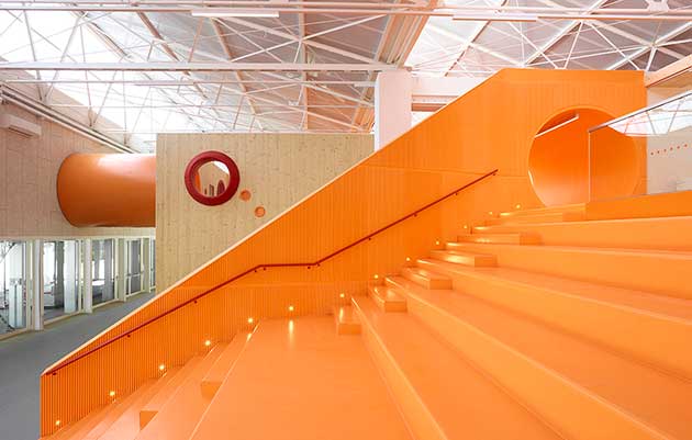 Asilo Nido, Guastalla. Il progetto di Mario Cucinella Architects rappresenta uno dei simboli della rinascita dell’Emilia Romagna dopo il terremoto del 2012. È un edificio che comprende la sala del consiglio comunale, spazi per gli insegnati, le famiglie e, ovviamente, i bambini (foto, ©Moreno Maggi) |