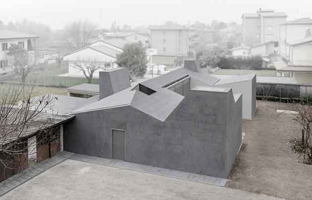Wiggly house, Como. La casa di abitazione, progettata da ifdesign di Franco Tagliabue Volontè e Ida Origgi, cerca protezione con un’architettura in cui la falda del tetto è alla ricerca della luce naturale (foto, ©Andrea Martiradonna) |