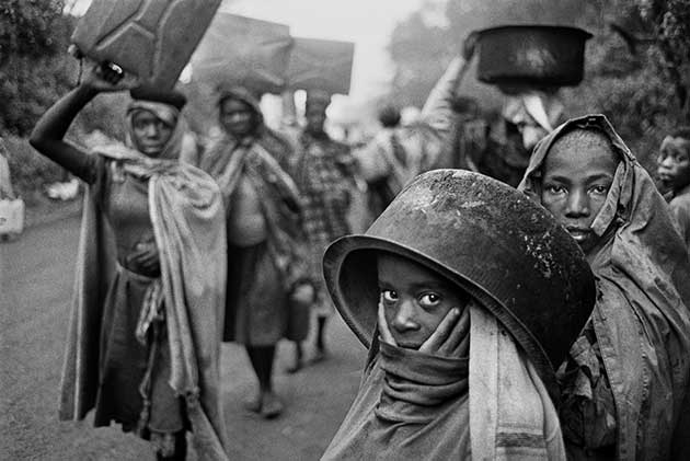 Sebastião Salgado: water supplies are often far away fromthe refugee camps. Goma, Zaire. 1994.© Sebastião Salgado / Amazonas Images/ Contrasto |
