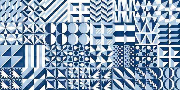 I motivi della collezione Blu Ponti, rieditata dalla Ceramica Francesco De Maio di Vietri |