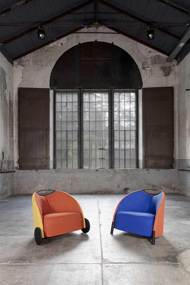 La poltrona può essere agevolmente spostata grazie alla versione con ruote (viene proposta anche nella versione con i piedini). Monocolore o bicolore, divertente e briosa, Biga può essere accessoriatacon tavoletta d’appoggio per smartphone o tablets.