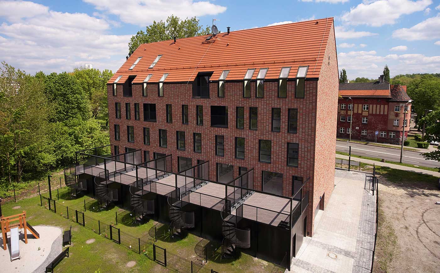 Riprende le forme del ‘familok’ – case popolari di metà Ottocento destinate ai minatori – l’edificio residenziale nei pressi di Katowice progettato dallo studio di architettura Małeccy Biuro Projektowe per la cooperativa immobiliare Mgsm.