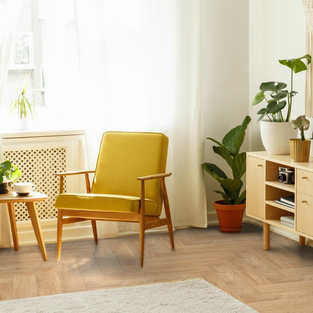Il pavimento, frutto del know-how di Woodco nei rivestimenti prefiniti, è in polvere di pietra (SPC). La componente minerale della sua struttura interna permette di superare i limiti dei tradizionali pavimenti vinilici e dei pavimenti in legno garantendo una maggiore stabilità e resistenza.