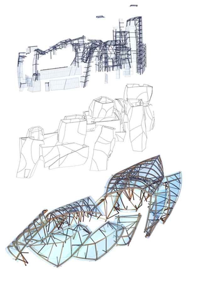 Frank Gehry è stato un precursore della progettazione parametrica (BIM, Building Information Modeling) che pratica da oltre vent’anni, tanto da avere fondato nel 2002 la Gehry Technologies (acquisita lo scorso settembre da Trimble). Con la sua complessità, l’edificio della Fondation Vuitton non fa eccezione: tutte le operazioni progettuali, incluse le validazioni dei pompieri per l’antincendio, sono state sviluppate in 3D per favorire la comprensione dell’edificio, che è stato studiato e continuamente ottimizzato virtualmente per controllarne le geometrie, le strutture, gli impianti e le operazioni costruttive. Il cantiere ha poi ereditato le informazioni BIM sviluppate in fase di progetto e le ha utilizzate per pianificare nel dettaglio tutte le operazioni di costruzione, dal cronoprogramma fino alle operazioni di sollevamento e posizionamento di ogni singolo elemento strutturale, architettonico o di facciata.