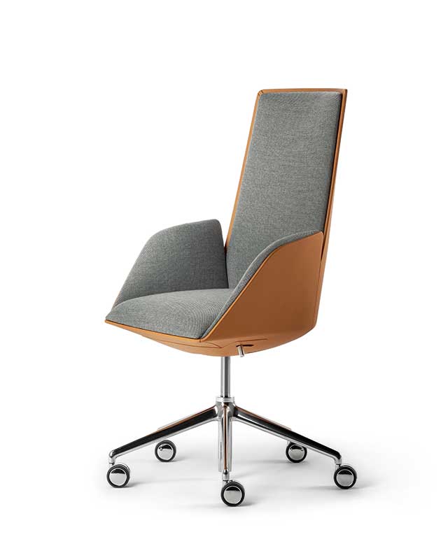 Per Poltrona Frau, lo studio austrico Eoos ha progettato inoltre il divano Vertigo: si tratta di un daybed compatto e leggero, utilizzabile anche nei momenti di pausa in ufficio, che, con un semplice gesto, si trasforma in letto. Anche in questo caso si tratta di una soluzione che sposa la tradizione con l’innovazione e che gioca sul contrasto tra il meccanismo di apertura, completamente visibile, e i processi di lavorazione artigianale della pelle e del cuoio.