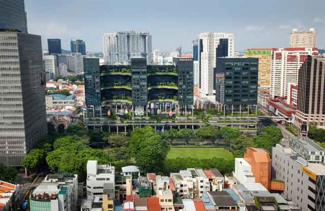 Il Parkroyal on Pickering di Singapore, pensato in ottica ecosostenibile specie nelle strategie energetiche passive e di integrazione con la natura del luogo, è situato in posizione strategica tra Chinatown, il Central Business District e l’Hong Lim Park. Il complesso si compone di quattro elementi verticali vetrati, il più distaccato dei quali a destinazione uffici, mentre l’albergo è contenuto nelle tre torri di 20 piani tra loro collegate con una pianta a E.