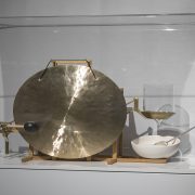 In esterno, in dialogo col prospetto barocco della facciata, spicca il sontuoso Samurai, simbolo della mostra, armatura di legno e acciaio corten per un volume lineare e sintetico; armonia e ritmo degli elementi plastici evocano un tessuto, una maglia attraversata dall’aria e dal vento.