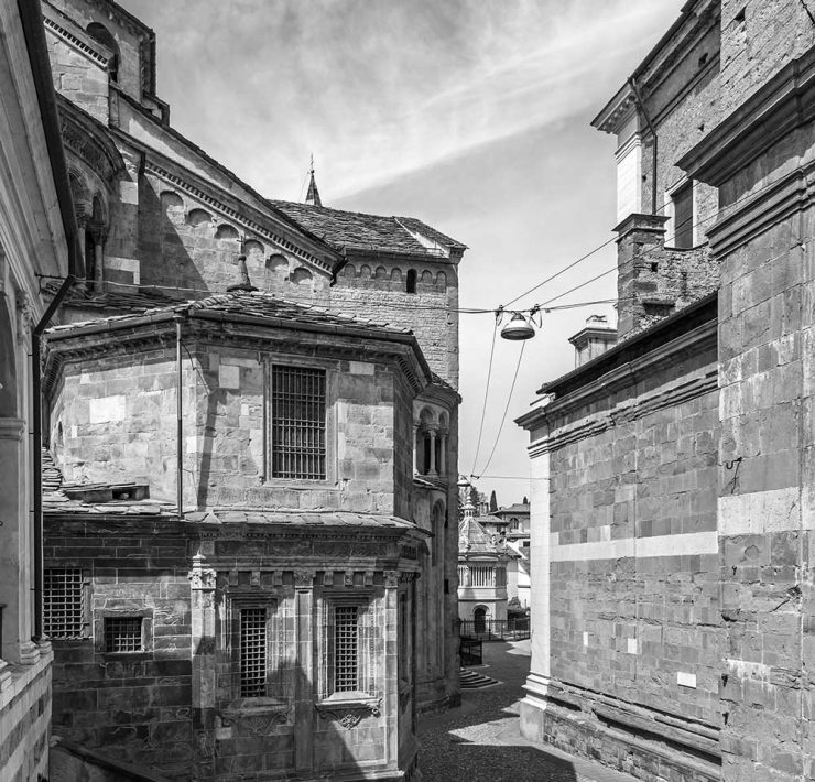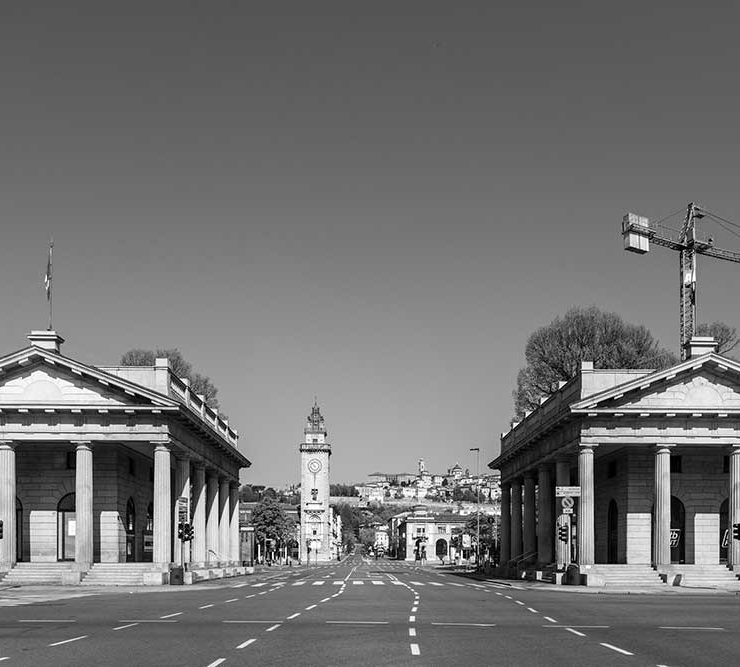 Se la Lombardia è stata l’epicentro dell’epidemia in Italia, Bergamo è la città lombarda che più ha sofferto. Il racconto fotografico di Giacomo Albo, condotto in aprile, “il più crudele dei mesi”, si è sviluppato dal perimetro, dalle porte, per concludersi alla sommità, nell’edificato storico di città alta, mantenendo costante la narrazione tra l’edificio e lo spazio urbano.