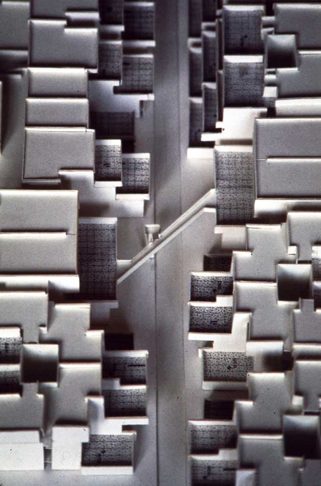 Nei progetti esposti, ogni volume è pensato come il centro di una rete di relazioni, e si sviluppa come in un processo narrativo che l’architetto sceglie di seguire nelle sue infinite possibilità di espansione.