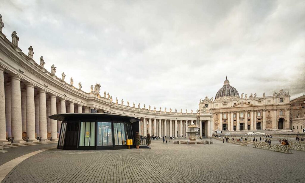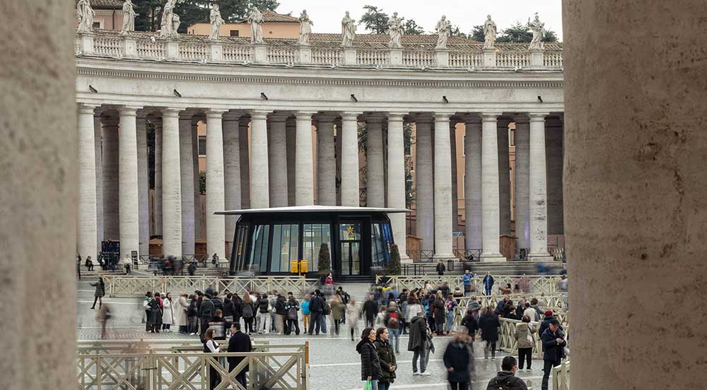 Inserire una nuova architettura in un contesto di grande rilevanza storica e spirituale come Piazza San Pietro richiede l’attenzione a un equilibrio tra nuovo e antico, con un intervento in grado di trasmettere l’idea di impermanenza all’interno del seicentesco colonnato di Gian Lorenzo Bernini.