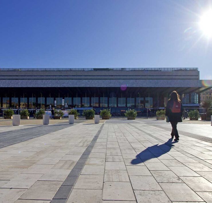 L’interno ospita la filatelia e l’ufficio postale, assolvendo a una funzione sia espositiva che di servizio.