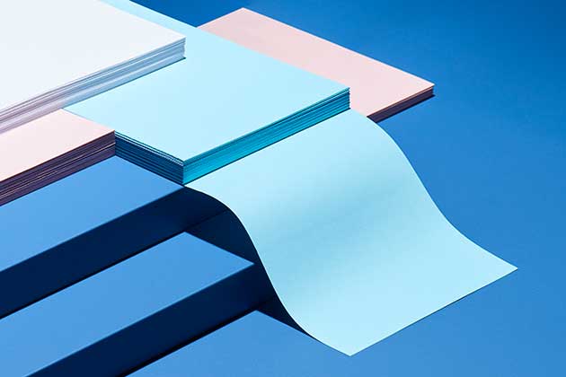 Office rappresenta uno scenario lavorativo di grande impatto: risme di fogli colorati che si confondono con le superfici di Fenix NTM e creano un gioco di tagli netti e spessori, angoli e linee curve.