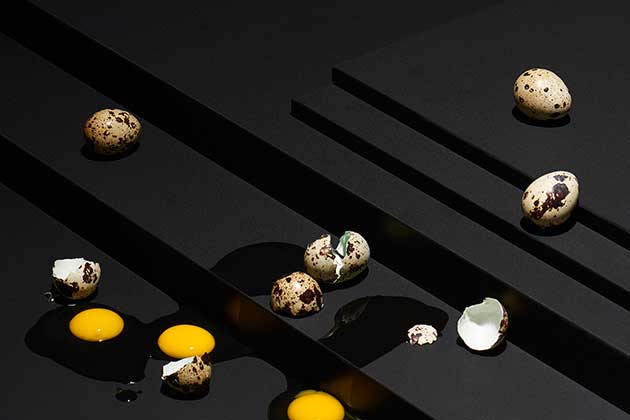 Uno scenario surreale per Restaurant, ambito in cui Fenix NTM esprime al meglio le sue proprietà igieniche e di idoneità a contatto con il cibo, persino quando si rompono tragicamente tutte le uova. Anche negli spazi dedicati al pubblico è un materiale elegante e anti-impronta con cui realizzare anche tavoli e sedute.