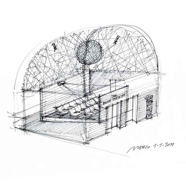 Marco Piva ha dedicato un’attenzione particolare alla progettazione dell’unico ambiente in copertura presente già nell’impianto originale degli anni 30, la Cupola centrale. In seguito ad un meticoloso processo di restauro, al suo interno è stato allestito uno spazio multifunzionale ad altissimo contenuto tecnologico. Un complesso sistema di 586 frattali in alluminio con finitura a specchio retroilluminati da un sistema a LED RGB, riveste l’intera superficie della Cupola. Oltre a creare un ambiente unico e personalizzabile per ogni evento, questa soluzione permette di modulare il suono in modo ottimale. Anche la boiserie in legno, la cui superficie è stata studiata acusticamente, contribuisce a restituire un ambiente perfetto per qualsiasi evento musicale. Un sistema meccanizzato di sedute a scomparsa consente la massima flessibilità di utilizzo dello spazio che in pochi secondi può essere adibito a sala concerti facendo comparire il numero di sedute richiesto per gli spettatori fino a un massimo di 23, o a sala da ballo, facendole scomparire tutte, oppure a sala proiezioni, grazie alle più avanzate tecnologie audiovisive presenti.