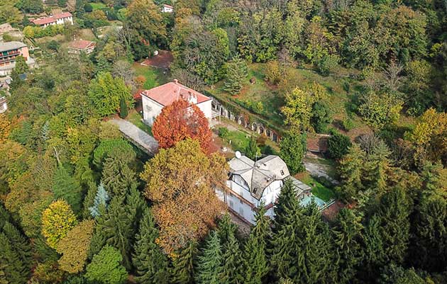 Vista aerea della villa e del parco sulle colline di Moncalieri |