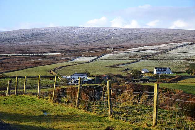 Paesaggio rurale del North Mayo, nei dintorni di Ballycastle e a qualche chilometro dall’area dei Céide Fields. Fotografia di Patrizia Boschiero, Fbsr, gennaio 2018. |