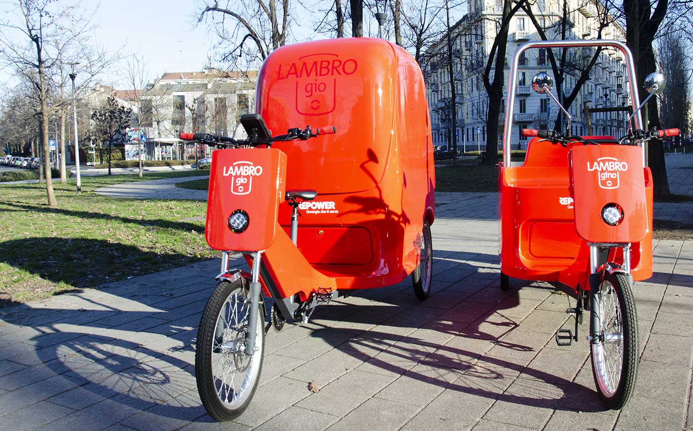 Progettati dal premio Compasso d’Oro alla Carriera Makio Hasuike, i cargo elettrici Lambro che Repower presenta in questi giorni a Eicma, l’Esposizione internazionale del ciclo e motociclo di Milano, sono veicoli leggeri a tre ruote e pedalata assistita utili per varie attività, dalla mobilità urbana alle strutture di ospitalità diffuse, nonché per la logistica di ultimo miglio e le realtà commerciali e industriali.