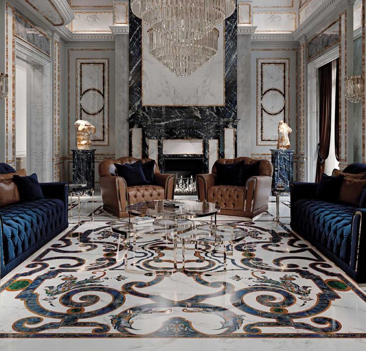 Le tre vetrine del negozio, come una gioielleria, presenteranno teche in vetro, come espositori per gioielli, miniambienti rivestiti in marmi, onici e semipreziose, arredate con la collezione in miniatura.