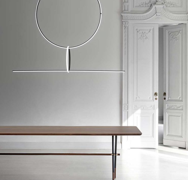 Lampada Arrangements, Flos. Design: Michael Anastassiades. Dalla motivazione della giuria: “Una danza di minimalismo, geometria e tecnologia; interpreta bene i led e sa trasformarli in emozione”