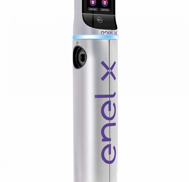 Stazione di ricarica elettrica Enel X Juicepole/Juicebox, Enel X. Design: Defne Koz, Marco Susani - Koz Susani Design. Dalla motivazione della giuria: “Introduce nella quoti-dianità del paesaggio urbano, in modo discreto e non invasivo, una tecnologia utile e in-novativa come la ricarica elettrica.”