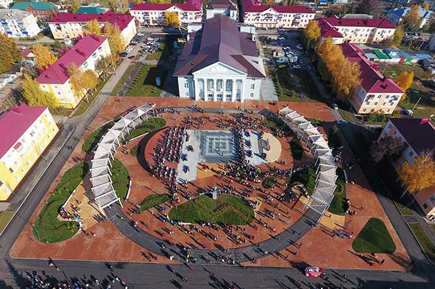 Vista aerea della piazza centrale di Bavly, nella Repubblica di Tarastan (ph © Lenar Gimaletdinov).