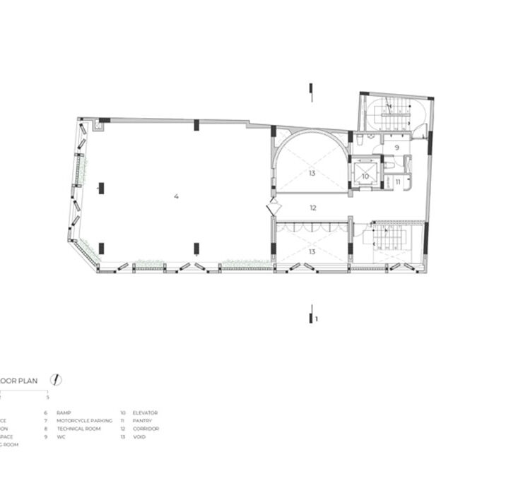 All’interno, le aree funzionali sono separate da un vuoto centrale a tutt’altezza che riceve luce dall’alto e crea un ‘effetto camino’ per cui l’aria più calda sale verso l’alto, contribuendo al raffreddamento degli ambienti. Su un lato del vuoto centralesi affacciano gli uffici, con le facciate che si aprono per catturare la luce del sole e il vento, mentre l’altro lato ospita i collegamenti verticali e gli ambienti di servizio.