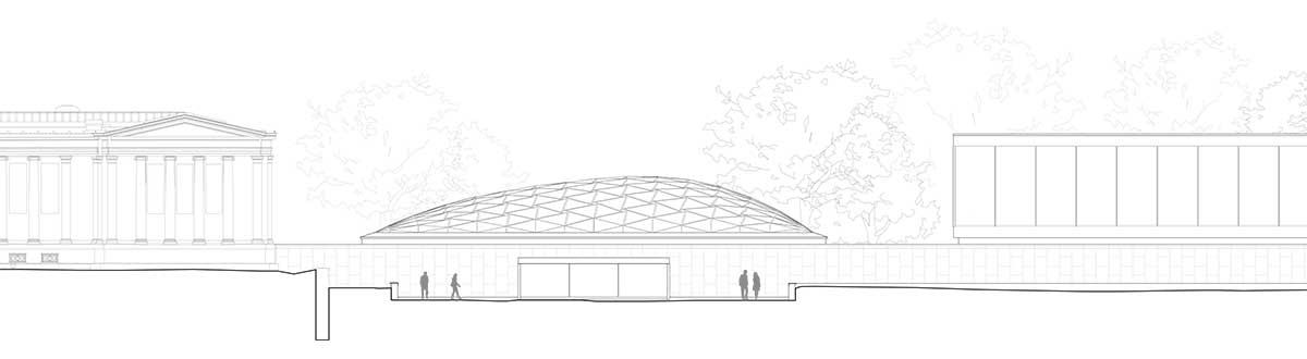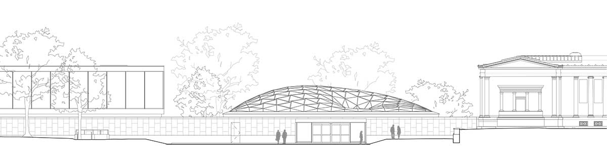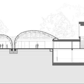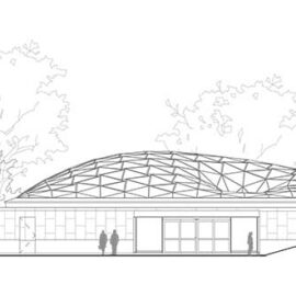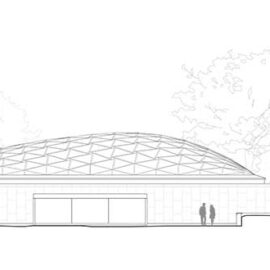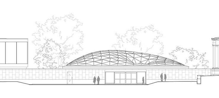 Common Sky, che si inserisce nel masterplan di ampliamento del campus e del museo condotto da Shohei Shigematsu, partner di Oma alla guida della sede newyorchese dello studio, completa l’addizione modernista del Seymour H. Knox Building, completato nel 1962 su disegno di Gordon Bunshaft, e con la sua forma organica riprende il carattere del luogo e del paesaggio circostante, in particolare degli alberi e dei prati del Delaware Park disegnato a fine Ottocento da Frederick Law Olmsted.