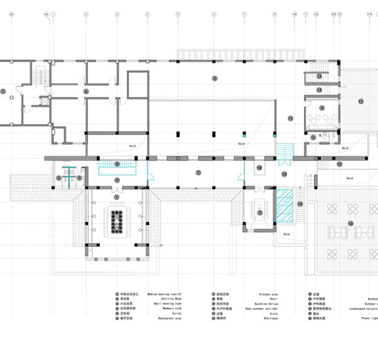 In secondo luogo, lo spazio di 2.200 metri quadrati e i percorsi di circolazione sono stati ridistribuiti. Al secondo piano, il ristorante esistente è stato conservato e le sale conferenze di varie dimensioni sono state riconfigurate.