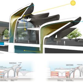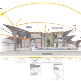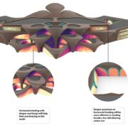 Nel progetto, lo stile inequivocabile dello studio fondato da Zaha Hadid e oggi guidato da Patrick Schumacher dà forma a grandi torri del vento, elementi vernacolari tipici del Medio Oriente e dell’Asia Centrale, per sviluppare strategie ambientali passive in grado di creare condizioni interne ottimali con il minimo consumo di energia.