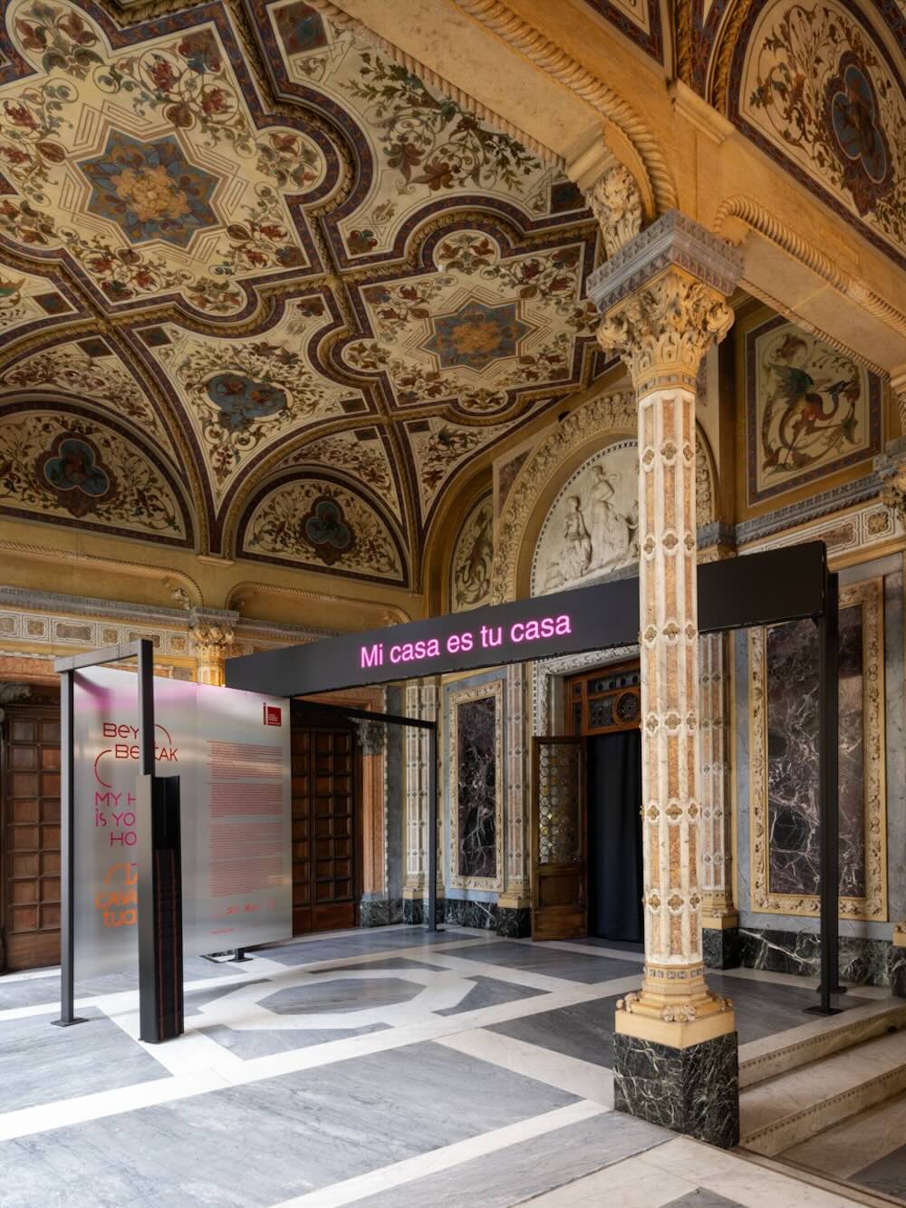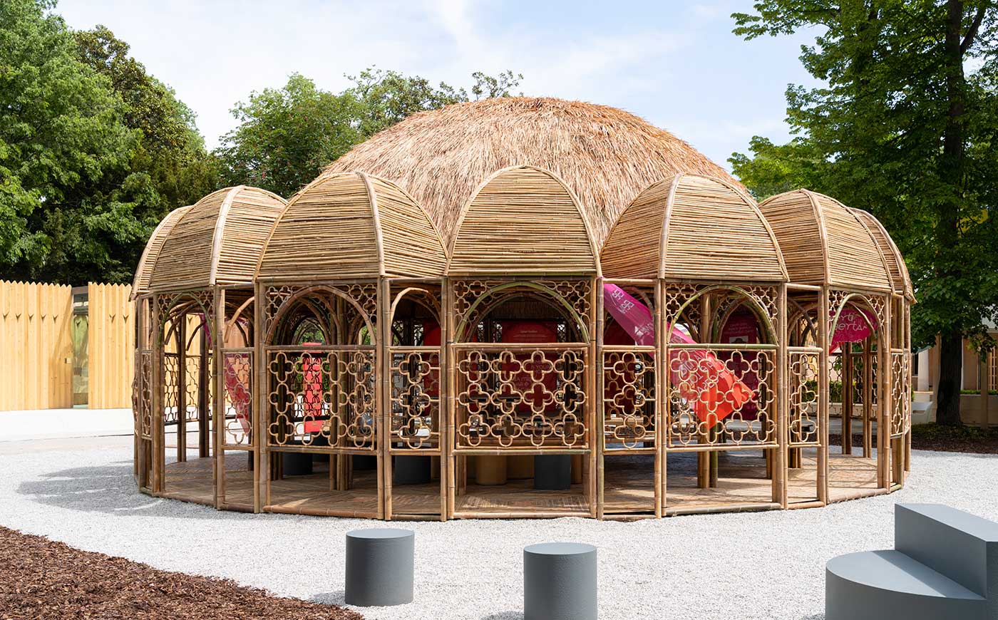 Curata da Aurélien Lemonier e Sean Anderson per conto del futuro Art Mill Museum, la mostra si intitola Beyti Beytak. My Home is Your Home. La mia casa è la tua casa e si articola su due sedi. Nei Giardini, sul sito del futuro padiglione, è stata allestita una struttura temporanea firmata dalla progettista pakistana Yasmeen Lari: il Community Centre, realizzato in bambù, è un omaggio all’architettura sociale e resiliente promossa in Pakistan dalla Heritage Foundation.