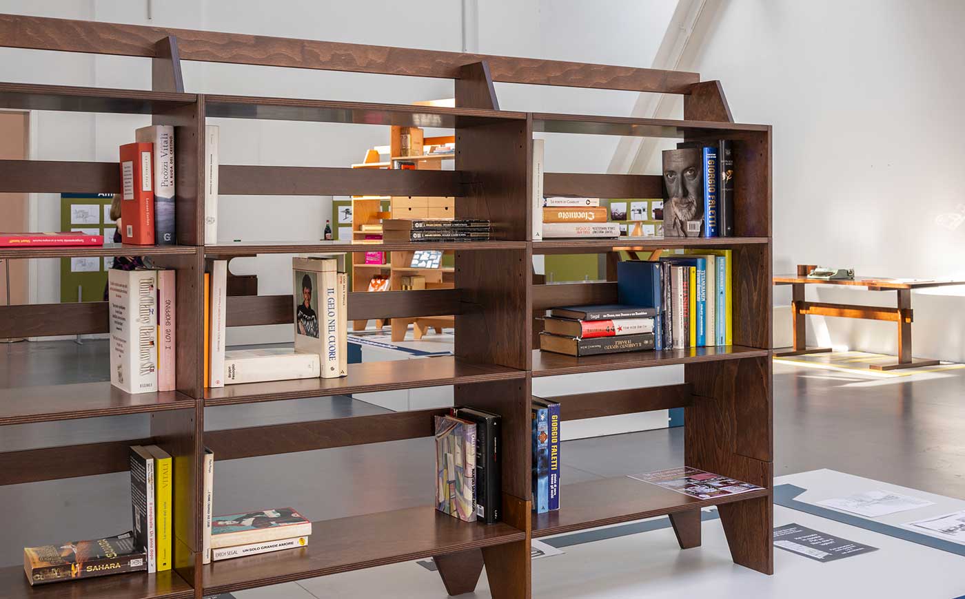Tra le opere in mostra, ordinate cronologicamente e articolate in sezioni che alternano arredi, lampade, oggetti e materiali d’archivio, spicca la libreria F54, datata 1954, già inclusa nella mostra “Il design italiano oltre le crisi” (Triennale di Milano, 2014), a cura di Beppe Finessi.