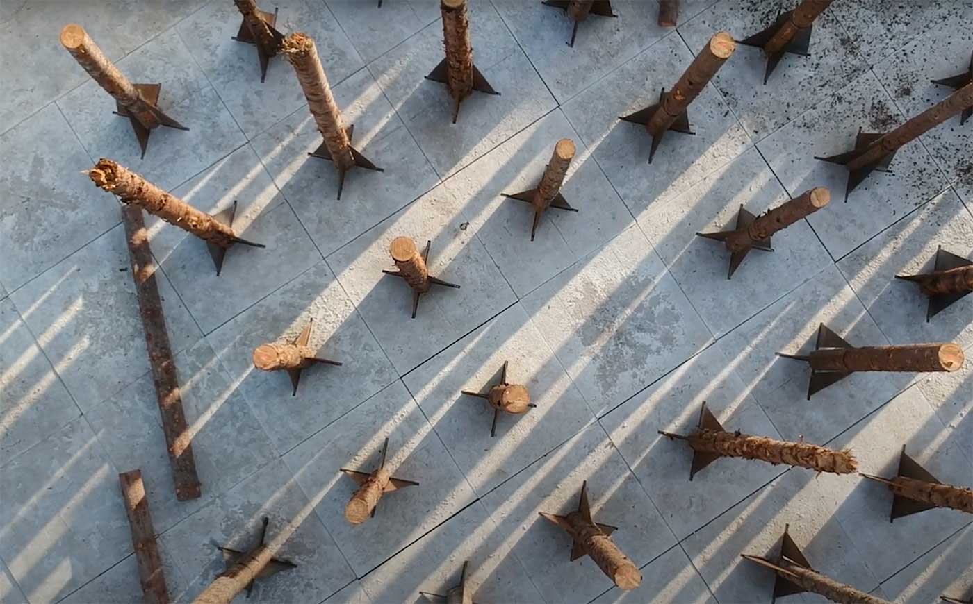 In Carnia, una delle zone più colpite, 400 di quei tronchi vengono recuperati e partono per il teatro greco di Siracusa, dove, protagonisti della scenografia ideata da Stefano Boeri per Le Troiane di Euripide, diventano muti testimoni di entrambe le tragedie.