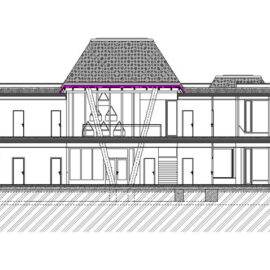 Attualmente in costruzione, il parco giochi esterno con strutture per l’arrampicata e altre attrezzature è stato progettato per imitare un parco divertimenti, una sorta di paesaggio della fantasia dei bambini.