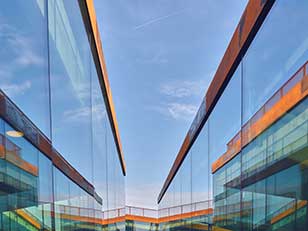 Dalla corte centrale si accede alle quattro gallerie sotterranee che vetrate alte 6 metri rendono molto luminose (ph © Rasmus Hjortshoj) |