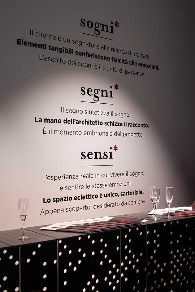 Il payoff di Eclettico è nelle tre Esse di “sogni”, quelli del cliente, “segni”, ovvero la capacità di comprenderli e sintetizzarli in un progetto, e “sensi”, stimolati da un’architettura di interni che generi emozioni.