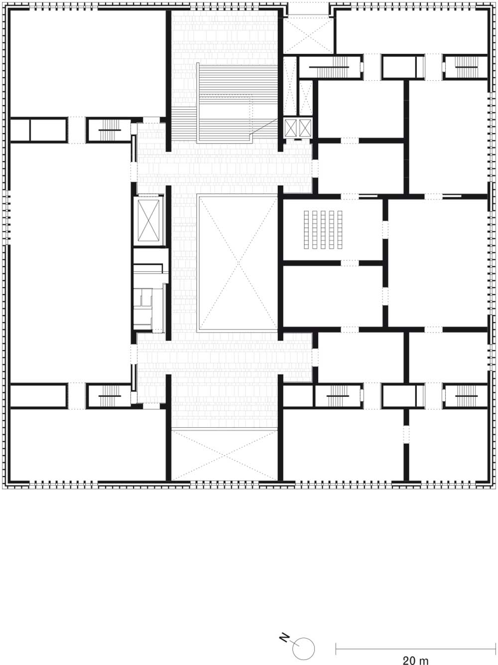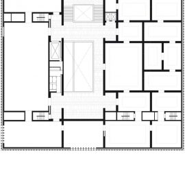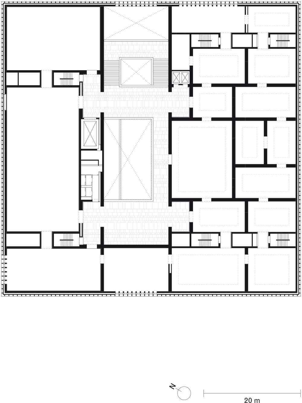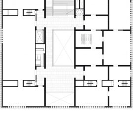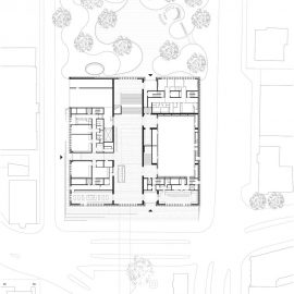 L’organizzazione interna si basa sul concetto di ‘stanze da abitare’ e si esprime nel design differente degli ambienti in termini di dimensioni, orientamento, materialità e luce, dando a ognuno un proprio carattere e creando una sequenza diversificata di spazi.