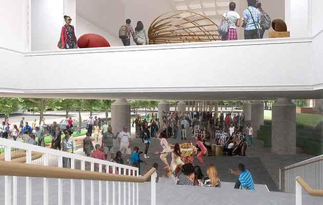 | Render del piano terra con vista dalla scala (credits Pei Cobb Freed & Partners) |