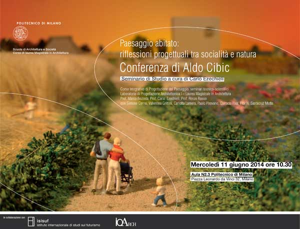 Mercoledì 11 giugno alle 10:30 l’architetto Aldo Cibic terrà una conferenza al Politecnico di Milano dal titolo Paesaggio abitato: riflessioni progettuali tra socialità e natura.